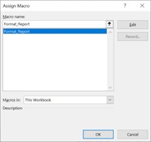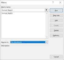 2. In the ‘Record Macro’ dialog box, give your macro a name (such as: Format_Report) – it must not include any spaces.
