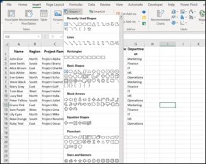From the ‘Insert’ ribbon, select ‘Shapes’, then choose any shape and drop it onto the page wherever you like: